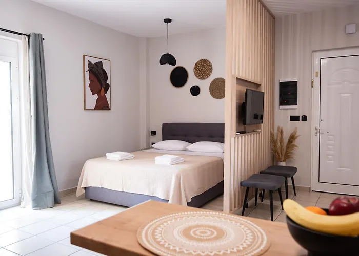 Ten apartament zapewnia komfort, oferując wyposażony aneks kuchenny z ekspresem do kawy/herbaty, lodówką i piekarnikiem. W malej odległości do przystanku autobusowego Nikolaou Skoula. Obiekt noclegowy dysponuje również tarasem z widokiem na ulicę.